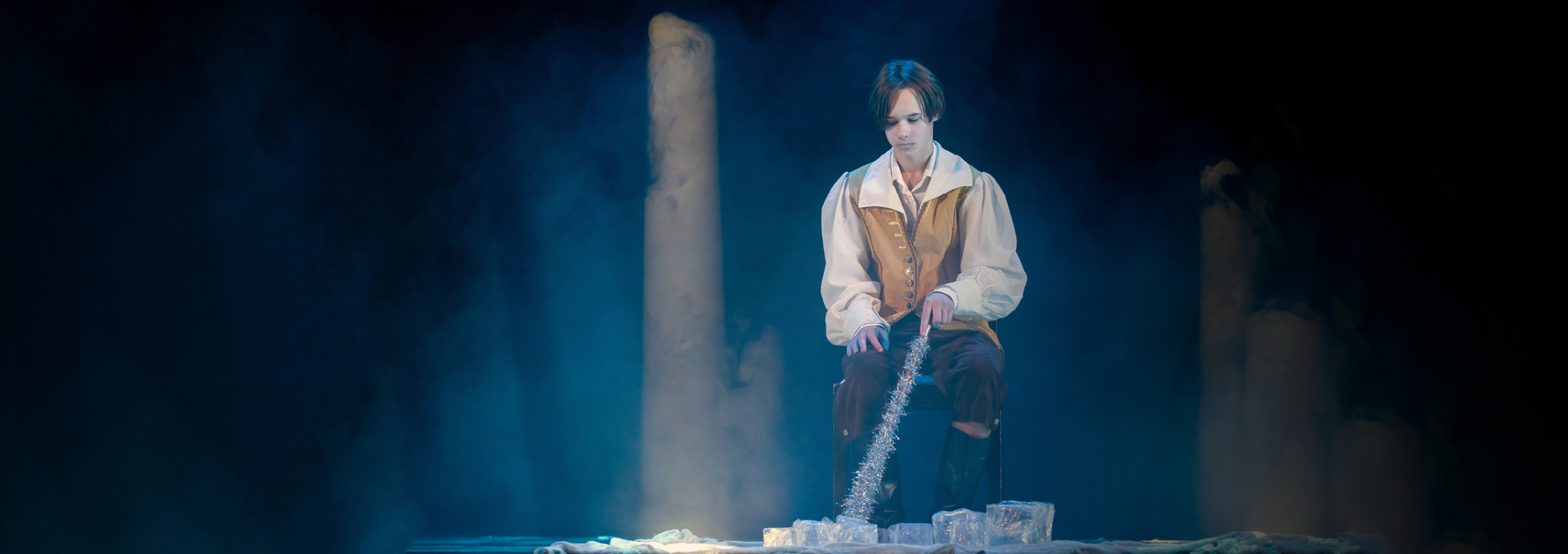 Сказка о настоящей любови и верности, которые способны преодолеть любые преграды, найти похищенного мальчика по имени Кей, растопить ледяное сердце героя и вернуться домой. Вместе с героями сказки: бабушкой Кея и Герды, Советником и Королем, принцем Клаусом и принцессой Эльзой, разбойниками, воронами Кларой и Карлом, Северным оленем и, конечно, Снежной Королевой на сцене будет сам сказочник, который повествует сюжет сказки и провожает зрителя по всем приключениям главных героев.