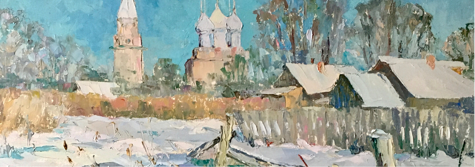 Экспозиция включает 20 живописных произведений, объединенных темой красоты русской природы. Пейзажи отражают состояние традиционной зимы средней полосы России: в лучах утреннего солнечного света или багряного заката просторы заснеженных полей, лесное царство пушистых елей и сосен, покрытые льдом реки и серебристый иней на ветках деревьев.