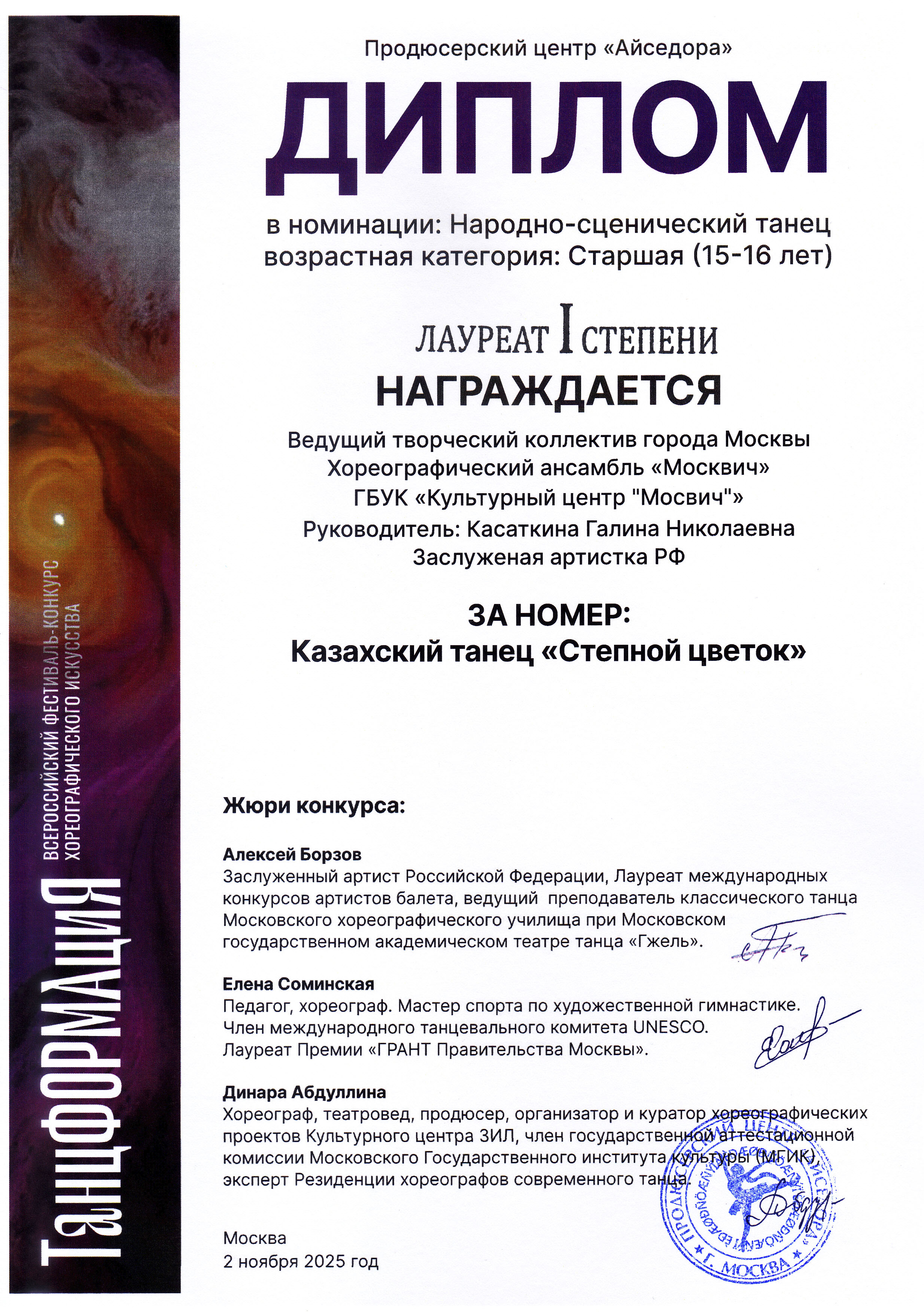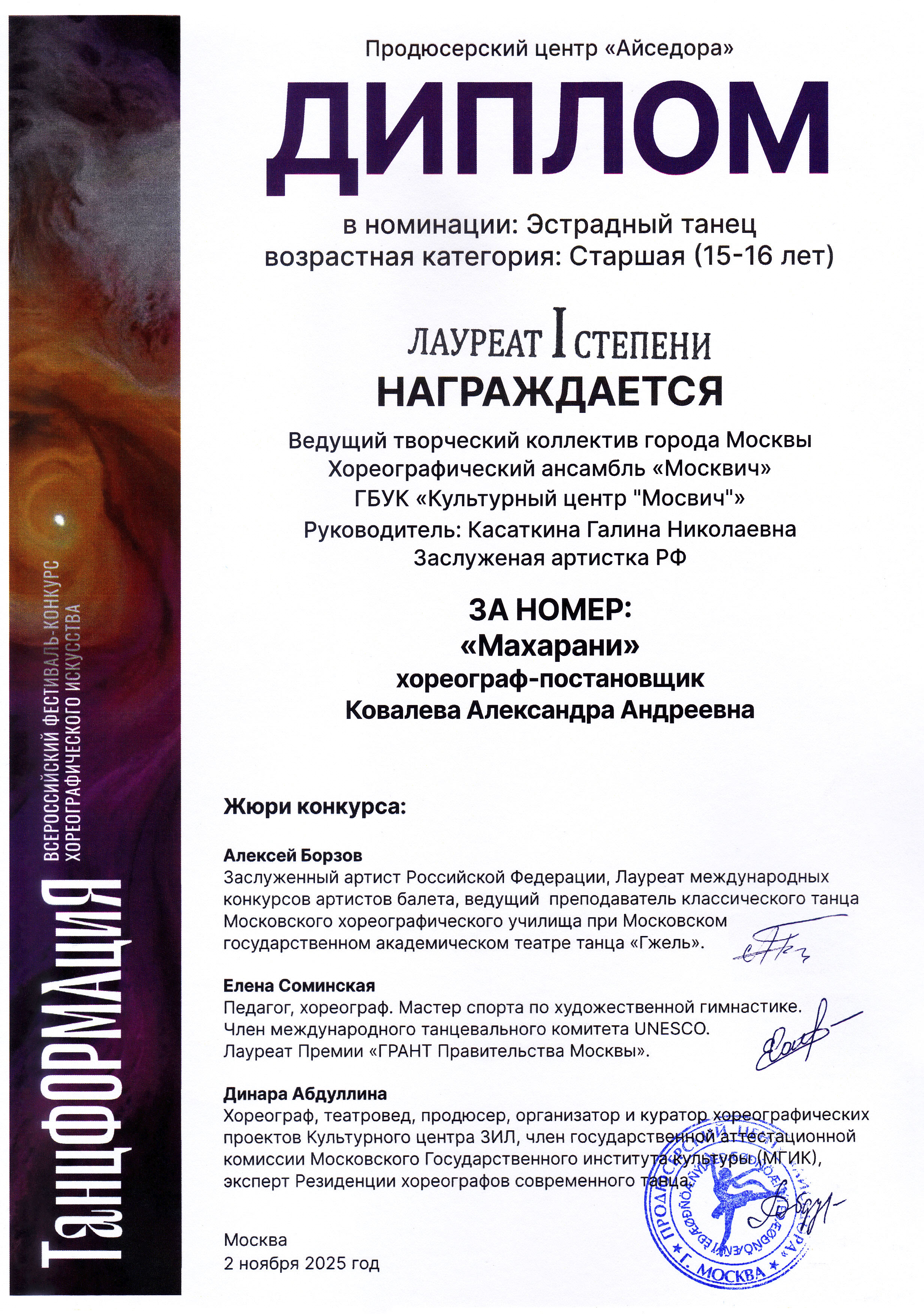2 ноября 2025 года молодёжная группа хореографического ансамбля «Москвич» приняла участие во Всероссийском фестивале-конкурсе «ТанцФОРМАциЯ» — масштабном событии, объединяющем лучшие хореографические коллективы страны.