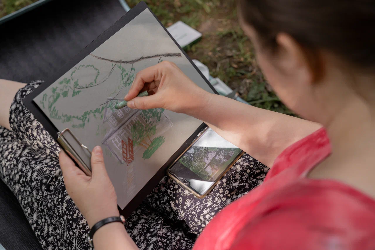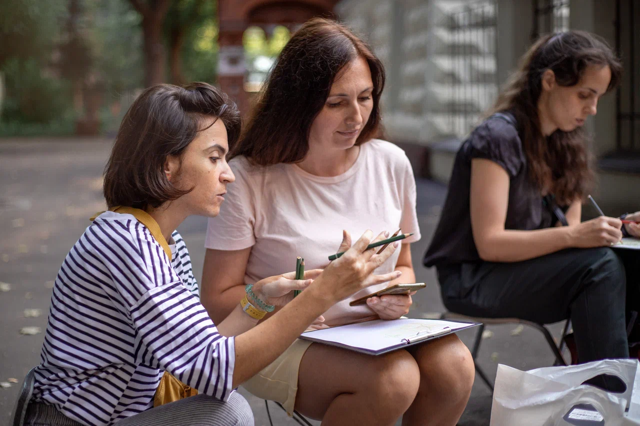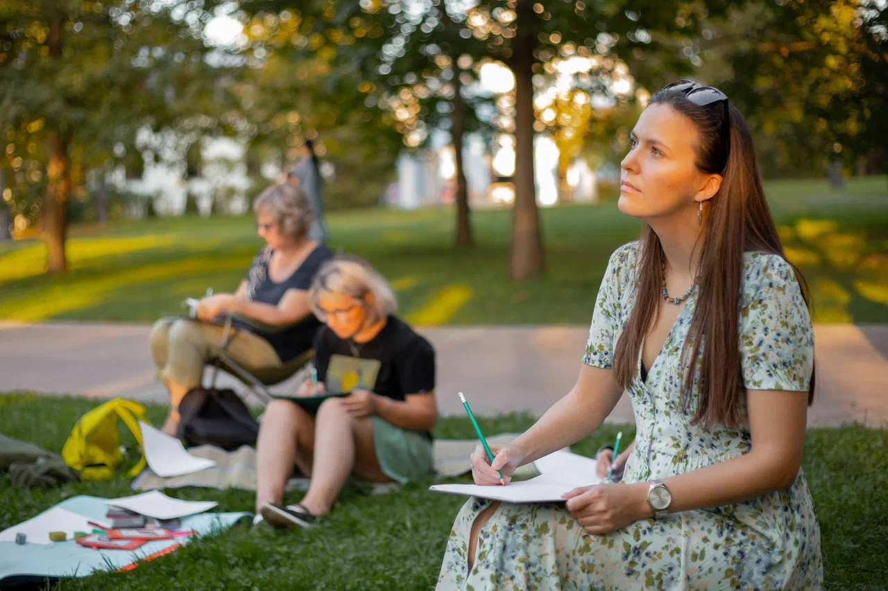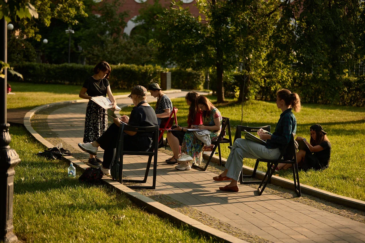«Пленэр Москвича» – это художественно-образовательный проект, объединяющий людей для совместного творчества на улицах Москвы. Участники под руководством художников не только исследуют город через живопись и графику, изучая его историю, архитектуру и скрытые смыслы, но и отдыхают от городской суеты, наслаждаются тишиной. Перед началом пленэра мастер рекомендует выключить мобильные устройства и поставить на паузу соцсети.